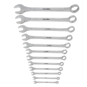 O Jogo de chaves combinadas 6 a 22 mm 12 peças da Vonder é indicado para apertar e soltar porcas e parafusos sextavados. Nunca utilizar prolongadores sobre as chaves, pois isso aumentará o torque aplicado e diminuirá a vida útil da ferramenta. Uso industrial.