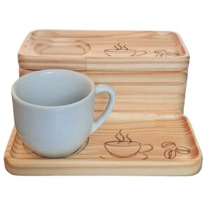 kit Jogo conjunto 12 Pires Retangulares p/ xícaras de café e chá - Pinus Nossos pires de Madeira pinus para xícaras de café/chá são simplesmente charmosos e muito práticos para organizar as xícaras ao servir um café Ótimo para te ajudar à desfrutar de momentos valorosos e porque não saborosos na companhia da familia e amigos. Ideal para Cafeterias, Pubs, Padarias, Restaurantes, Buffet, etc. Acondiciona xícaras de Café e Chá Medidas: (AxLxC) 1,5cm x 9cm x 18cm OBS: A Imagem da Xícara e torradas São meramestre ilustrativas e não acompanham o produto Por se tratar de madeira de Pinus natural, pode existir pequenas variações na tonalidade das cores da madeira. Embalagem contêm 12 peças