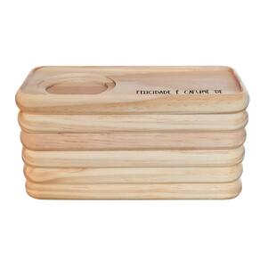 kit Jogo conjunto 4 Pires Retangulares p/ xícaras de café e chá - Pinus Nossos pires de Madeira pinus para xícaras de café/chá são simplesmente charmosos e muito práticos para organizar as xícaras ao servir um café Ótimo para te ajudar à desfrutar de momentos valorosos e porque não saborosos na companhia da familia e amigos. Acondiciona 6 xícaras de Café e Chá Medidas: (AxLxC) 1,5cm x 9cm x 18cm OBS:Por se tratar de madeira de Pinus natural, pode existir pequenas variações na tonalidade das cores da madeira. Embalagem contêm 4 peças Marca: Antilope Decor Porcelanas