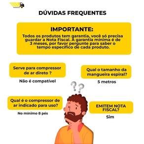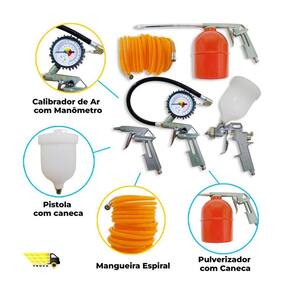 Nossa equipe de atendimento está sempre pronta para te atender da melhor forma possivel. Nossa postagem tem em média de menos de 24 hrs. O kit para compressor contém 5 peças que são acopladas ao compressor para pintar paredes, portões, grades, bicicletas e para envernizar móveis e quadros. Também utilizado para inflar pneus de autos, motos, bicicletas, como também piscinas, bóias e balões de aniversário, além de limpar ou pulverizar motores em carros, motos e outros equipamentos e painéis. - Ferramenta de aplicação em aço, que oferece mais durabilidade que as de plástico. - pulverizador com caneca de plástico, mais leve e fácil de limpar e de manusear; Ferramenta de aplicação de pintura: Caneca: 600ml Bico: 1,5mm Pressão de trabalho: 4555psi Consumo de ar: 5cfm 40psi Altura aprox.: 19,5cm Largura aprox.: 15,5cm Ferramenta de aplicação de limpeza: Pressão de trabalho: 3055psi Consumo de ar: 3,5cfm 30psi Altura aprox.: 17cm Largura aprox.: 41cm Ferramenta de aplicação de ar pulverização: Pressão de trabalho: 4575psi Consumo de ar: 5cfm 40psi Altura aprox.: 15cm Largura aprox.: 11,5cm Calibrador de pneus com manômetro: Capacidade: 0 a 150 psi Comprimento aprox.: 57,5cm Mangueira de ar espiral pu Comprimento: 5 metros Capacidade: acima de 170psi Todas as peças são padrão 1/4 Pergunta - a Ferramenta de aplicação de pintura, ela é com caneca de alumínio E por acaso tem como comprar o engate rápido junto com o kitDenunciar Resposta - temos apenas as informações disponíveis no anúncio. Pergunta - as pecas vem com o adaptador para engate rápido Resposta - não vai apenas os produtos conforme estão nas fotos. Pergunta - tem com outros engates Resposta - nâo apenas 1/4 Gostou de nosso anúncio Tem dúvida sobre algo Por favor, nos envie uma pergunta estamos aqui para lhe atender da melhor forma possível. Marca: Não Informado