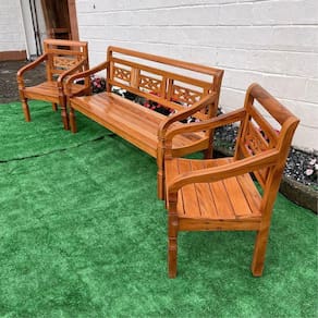 O Conjunto com 1 Banco e 2 Poltronas em Madeira de Demolição é para você que procura uma peça bonita e campestre. Altamente resistente e durável, é um item em estilo rústico com detalhes entalhados em flor, proporcionando elegância e um diferencial ao seu ambiente. A peça é produzida em madeira de demolição com acabamento em verniz, dando mais resistência e durabilidade no produto. Deixe sua casa ainda mais bonita e sofisticada com o Conjunto com 1 Banco e 2 Poltronas da Sudeste Rústico.