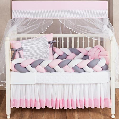Kit jogo de berço americano trançado 11pçs com edredom e saia Cor: rosa Kit jogo de berço americano trançado fofura para bebê menino e menina 11 peças com edredom e saia