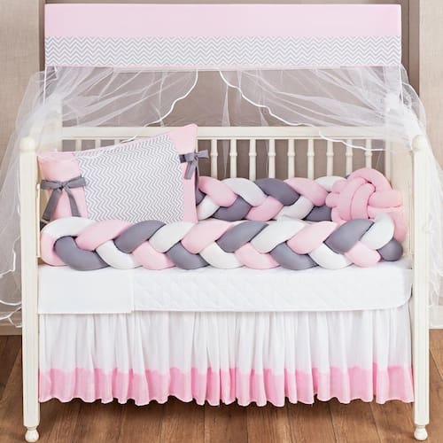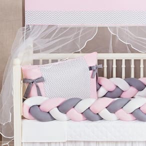 Kit jogo de berço americano trançado 11pçs com edredom e saia Cor: rosa Kit jogo de berço americano trançado fofura para bebê menino e menina 11 peças com edredom e saia