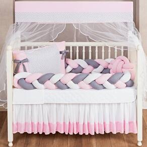 Kit jogo de berço americano trançado 11pçs com edredom e saia Cor: rosa Kit jogo de berço americano trançado fofura para bebê menino e menina 11 peças com edredom e saia