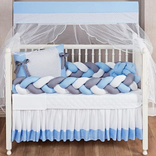 Kit jogo de berço americano trançado 11pçs com edredom e saia Cor: azul Kit jogo de berço americano trançado fofura para bebê menino e menina 11 peças com edredom e saia
