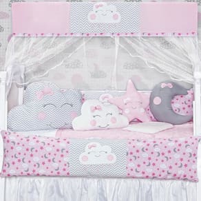Informações importantes: O produto já vai pronto para o uso, com o enchimento já incluso. Acompanha as peças conforme a descrição, não esta incluso o berço A cabeceira e as laterais do kit possuem zíper para retirar o enchimento, facilitando assim uma possível lavagem do produto. Marca: Jm Enxovais