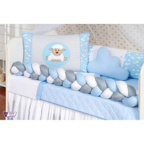 KIT BERÇO OVELHA 14 PEÇAS Contém: 1 Edredom 1,30 m x 75 cm 1 Almofada nuvem 40 cm x 20 cm 1 Travesseiro 100% algodão 40 cm x 30 cm. 1 Cabeceira 57 cm x 37 cm 1 Lateral 1,25 m x 25 cm 1 Trança 1,25 m x 12 cm 1 Lençol de cima 1,30 m x 90 cm 1 Fronha 28 cm x 38 cm 1 Bandô de mosqueteiro 1,40 m x 20 cm 1 Mosqueteiro 4,50 m x 1,50 m 1 Trocador 60 cm 40 cm. 1 Lençol 1,20 m x 70 cm. 1 Saia box 1,30 m x 70 cm x 30 cm. 1 Travesseiro 100% Algodão 0,40 cm x 0,30 cm. Observação: Kit de berço que serve em berços padrão nacional e americano Possui zíper para retirar os enchimentos Tecido de qualidade Composição: Tecido estampado: 100% algodão Tecido liso: 50% poliéster / 50% algodão Enchimento: 100% poliéster Mosquiteiro: 100% poliamida Travesseiro: 100% algodão / fibra silicone Marca: Não Informado