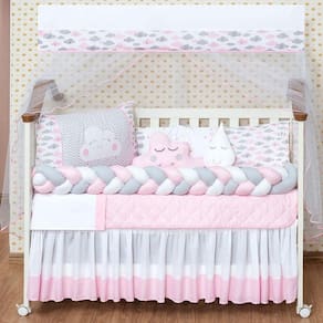 Kit de berço nuvem 12 peças O kit berço serve em berços padrão nacional e americano Possui zíper para retirar os enchimentos Contém na embalagem: 1 edredom 1,30 m x 0,75 cm 1 almofada nuvem 0,40 cm x 0,20 cm 1 cabeceira 0,57 cm x 0,37 cm 1 lateral 1,25 m x 0,25 cm 1 trança 1,25 m x 0,12 cm 1 lençol de cima 1,30 m x 0,90 cm 1 fronha 0,28 cm x 0,38 cm 1 bandô de mosqueteiro 1,40 m x 0,20 cm 1 mosqueteiro 4,50 m x 1,50 m 1 almofada de gota 1 saia box 1 lençol 1,20 m x 0,80 cm Composição: Tecido estampado: 100% algodão Tecido liso: 50% poliéster / 50% algodão Enchimento = 100% poliéster Mosquiteiro = 100% poliamida