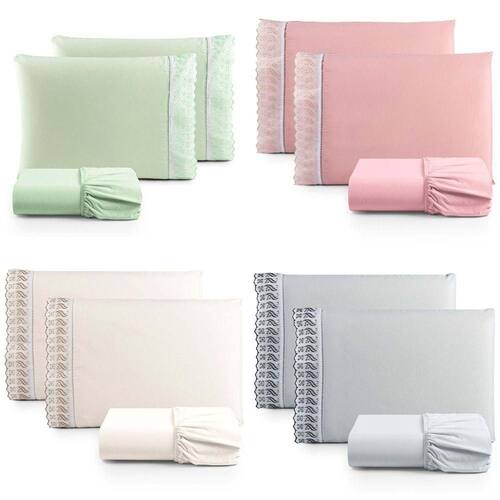 04 Lençois de Baixo:2,90m (Comprimento) x 2,75m (Largura) com elástico para Colchão 2,03 x1,98x0,30