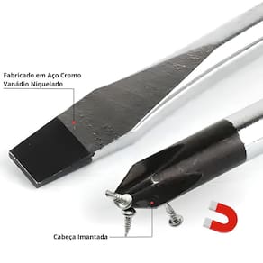 - cabeças magnéticas das chaves de fenda e phillips facilitam o manuseio de parafusos - o acabamento cromado protege as chaves contra corrosão - design profissional para garantir desempenho superior em todas as aplicações - os cabos ergonômicos oferecem conforto e aderência, reduzindo a fadiga durante o uso prolongado