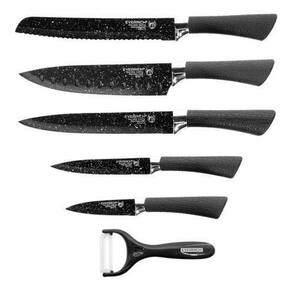 Facas afiadas de cozinha Everrich proporcionam rapidez e qualidade nas tarefas culinárias. Kit com 7 peças, sendo 5 facas antiaderentes, 1 descascador de legumes em cerâmica e um suporte magnético.