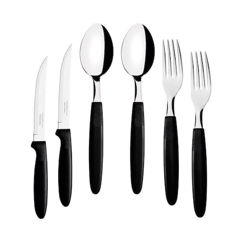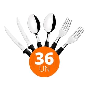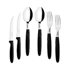 - 12 Colher de Mesa Tramontina Ipanema com Lâmina em Aço Inox e Cabo de Polipropileno Preto 23363400
