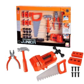 • Um super kit com morsa, ferramentas, parafusos e acessórios para as crianças brincar e aprender.