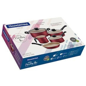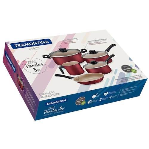 Para ter versatilidade e qualidade na hora de preparar suas refeições, conte com o jogo de panelas Tramontina Caribe em alumínio com revestimento interno e externo em Starflon Max Vermelho 05 Peças.