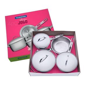Conjutno Kit Jogo De Panelas Inox 4 Peças Allegra Tramontina Fundo Triplo Reforçada Resistente
