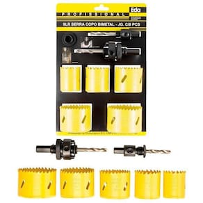 Jogo de Serra Copo com 8 Peças Bi Metal H.S.S. Ideal para furar metal e madeira.