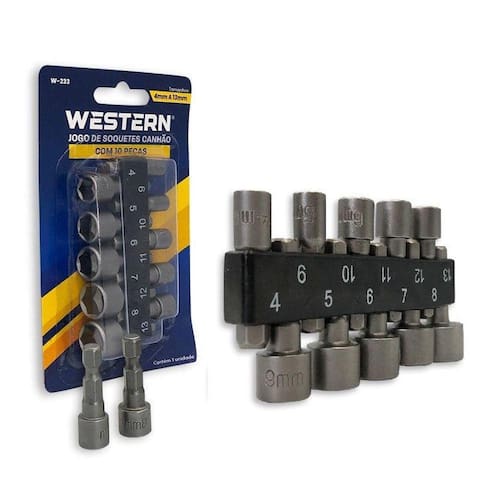 Kit Jogo de Soquete Canhão 10 Peças Parafusadeira Pratico