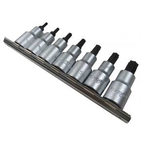 Jogo de soquetes bits torx 1/2' com 7 peças. produto de alta qualidade, fabricado em aço cromo vanádio e ponteiras escurecidas em chrome silicium vanadium. acompanha base de encaixe para organização dos soquetes e evitar perda. Marca: waft Conteúdo: -7 Bits torx: t20, t25, t30, t40, t45, t50 e t55 -1 Base de encaixe Aplicação: Ideal para profissionais da linha mecânica, industrias e manutenção em geral. utilizado para aperto e desaperto com maior torque em parafusos com encaixe torx com pino guia. Código: 6345 Marca: Não Informado