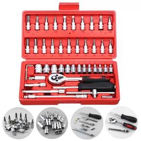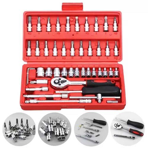 o jogo de soquetes com 46 peças é uma maleta com ferramentas uteis para manutenções que podem ser feitas em ambiente doméstico, para veículos, motocicletas e outros.A maleta conta com peças projetadas para o dia a dia, visando a facilidade e prontidão da manutenção sem muito desgaste.