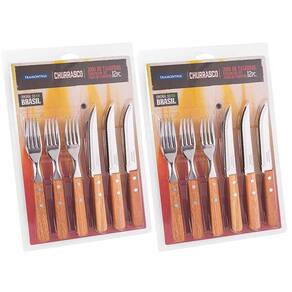 CONJUNTO COMPOSTO POR: 2 UN - JOGO DE TALHERES TRAMONTINA CHURRASCO COM LÂMINAS EM AÇO INOX E CABOS DE MADEIRA NATURAL 12 PEÇAS 22399030