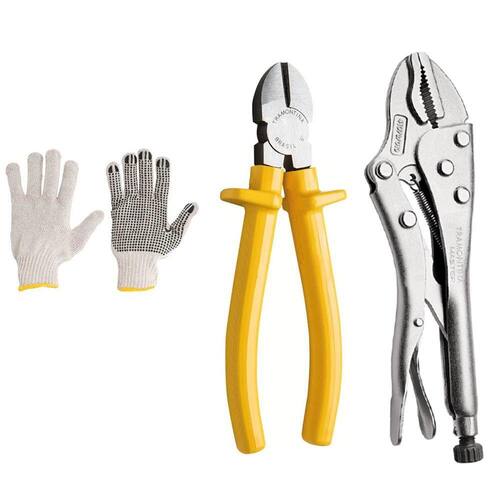 01 Par de Luvas de Malha 01 ALICATE DE PRESSÃO 10 01 ALICATE CORTE DIAGONAL 6 TRAMONTINA