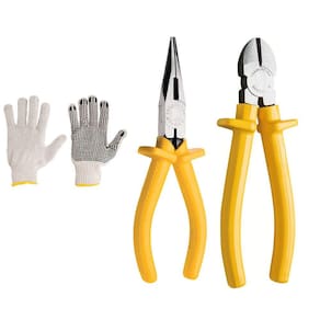 01 Par de Luvas de Malha 01 ALICATE BICO MEIA CANA 6 ISOLADO 1000V TRAMONTINA 01 ALICATE CORTE DIAGONAL 6 TRAMONTINA