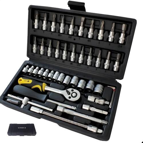Chega de apertos na hora de consertar Tenha a solução completa em mãos para reparos rápidos e eficientes na sua moto ou em casa. Transforme qualquer pequeno reparo em uma tarefa fácil e rápida com este incrível Kit Jogo de Chave Catraca. Principais Benefícios: Versatilidade Inigualável: Com 45 peças, este kit cobre uma gama imensa de parafusos e necessidades de aperto, desde os mais delicados até os mais robustos. Durabilidade : Fabricado em Aço Carbono de alta qualidade, garantindo resistência e longa vida útil, seja para ou doméstico. Organização e Portabilidade: A maleta plástica resistente mantém todas as ferramentas seguras, organizadas e fáceis de transportar para onde você precisar. Conforto e Eficiência: A chave catraca com haste em aço carbono permite trabalhos mais rápidos e com menos esforço, economizando seu tempo e energia. Solução Completa: Ideal para mecânica de motos, bicicletas, carros, e para ter sempre à mão em casa ou no escritório para emergências. Informações Técnicas Detalhadas: Marca: Bomder Quantidade de Peças: 45 Material da Maleta: Plástico de alta resistência Material das Ferramentas: Aço Carbono Conteúdo da Embalagem: 1x Caixa para Transporte Robusta 21x Mangas de Chave de Fenda Tipos: Uma palavra 4/5.5/7mm, Cruz 1/2/3, Soquete bege 1/2/3, Soquete hexagonal 3/4/5/6/7/8mm, Padrão 10/15/20/25/30/40mm 1x Junta Universal 13x Soquetes Sextavados Tamanhos: 4/4.5/5/5.5/6/7/8/9/10/11/12/13/14mm 3x Chaves Allen Tamanhos: 1.5/2/2.5mm 1x Haste Curta de 5.2 polegadas 1x Haste Longa de 6.4 polegadas 1x Coluna Elástica 1x Chave de Catraca 1/4 1x Haste Quadrada 1/4 1x Controle Deslizante 1/4 1x Conector de Cabeça de Broca Atenção: Essencial para sua caixa de ferramentas Não perca a chance de adquirir o kit que vai otimizar seus reparos. Clique em Comprar Agora e garanta praticidade e eficiência para o seu dia a dia Marca: Não Informado