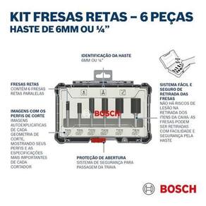 Ficou alguma dúvida Faça sua pergunta, ficaremos satisfeitos em lhe atender bem. Emitimos . Qualidade, preço Justo e atendimento Perfeito. O Jogo de fresas retas oferece cortes finos para uma variedade de aplicações, sendo a escolha perfeita para marceneiros, carpinteiros, instaladores de interiores e trabalhadores da construção civil. Os gumes de corte em carbeto de tungstênio das fresas garantem uma vida útil longa, além disso, são fabricadas de acordo com a norma de segurança DIN EN-847 da Europa. As fresas destinam-se a utilização em madeira macia, madeira dura e compósitos de madeira. O Jogo de 6 fresas retas contém uma seleção das fresas mais utilizadas para ranhurar e rebater. Seu estojo exclusivo Bosch é muito robusto e armazenas as fresas de maneira segura e firme, ao mesmo tempo que apresenta um design especial Easy-Pick permite que as fresas sejam removidas com rapidez e segurança pelo encaixe, oferecendo a proteção perfeita para utilização, armazenamento e transporte seguros do conteúdo. Ítens inclusos: - 1 Fresa reta 1/4, 6 mm x comprimento útil 20 mm, comprimento total 54 mm, - 1 Fresa reta 1/4, 8 mm x comprimento útil 20 mm, comprimento total 50 mm, - 1 Fresa reta 1/4, 10 mm x comprimento útil 30 mm, comprimento total 60 mm, - 1 Fresa reta 1/4, 12 mm x comprimento útil 30 mm, comprimento total 60 mm, - 1 Fresa reta 1/4, 16 mm x comprimento útil 30 mm, comprimento total 60 mm, - 1 Fresa reta 1/4, 20 mm x comprimento útil 30 mm, comprimento total 60 mm. Cód. Bosch: 2607017467 Ficou alguma dúvida Faça sua pergunta, ficaremos satisfeitos em lhe atender bem. Emitimos . Qualidade, preço Justo e atendimento Perfeito.
