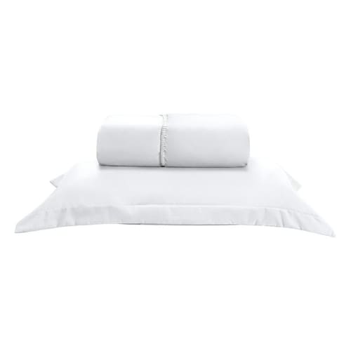 O acabamento em aba americana nas fronhas traz o charme perfeito para o lençol.