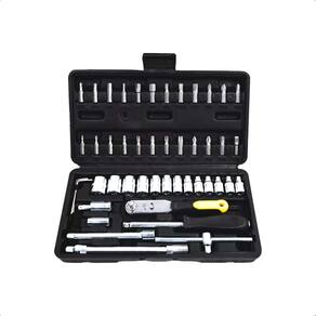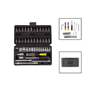 Este conjunto inclui 13 soquetes de 1/4 de 4mm a 14mm , 3 chaves sextavadas essenciais e ferramentas indispensáveis como chave catraca, adaptadores, barras de extensão e junta universal. Todos os itens vêm organizados em uma prática maleta, garantindo mobilidade e praticidade.