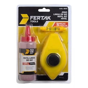 o jogo linha de giz com refil e nível fertak tools é a escolha certa para os profissionais de construção civil que buscam um marcador eficiente e simples de usar, pode ser utilizado também por marceneiros, carpinteiros, instaladores em geral e prestadores de serviço. Uma verdadeira evolução da marcação profissional, possibilitando a marcação de linhas retas em qualquer direção com muita praticidade, economia e limpeza, substitui o prego e o barbante. O combo oferece uma ótima relação custo x benefício, já que contém o giz de linha e o refil. Aplicação
