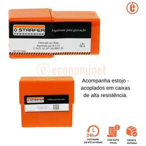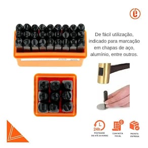 Especificações técnicas: Ref.: 99910212 Marca: Starfer Quantidade de punções: 36 punções Tipo de caractere: Número e letras Tamanho Do Caractere: 4mm Superfícies aptas: Metal Acompanha Estojo Plástico Protetor; Embalagem: Caixa Plástica. Composição: 26 Letras Do Alfabeto e 1 Símbolo (&) e 9 números.