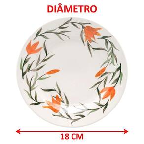 Uso: Resistente a micro-ondas, Resistente a lava-louças;Material: Cerâmica;Medidas: ;Altura 2cm X Diâmetro 18cm;Formato: Redondo;Decoração: ;Estampado;Cores: Laranja, Branco e Verde;O modelo Donna e Actual é um produto da Biona, uma marca do Grupo Oxford que comercializa cerâmicas, talheres, utensílios, além de peças em cristal. As cerâmicas da marca Biona oferecem um ótimo custo benefício, pois possuem preço mais acessível. Isso faz com que os critérios de classificação sejam menos rigorosos e o produto final apresente características relativas ao processo de produção.