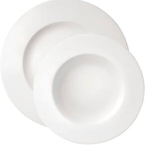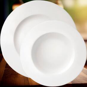 Kit Jogo Pratos Raso Fundo 24Pçs 12 Pessoas Aba Larga Branco -