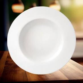 Kit 12 Pratos Fundo Aba Larga Branco Com 23cm De Diâmetro;
