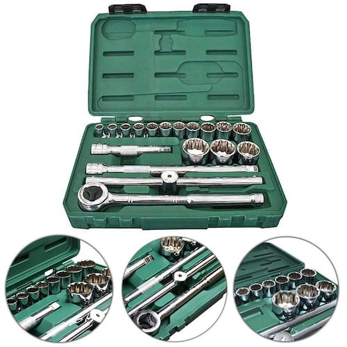 Kit Jogo Soquetes Sata 18 Peças 10-32mm 1/2Código: 3307556Kit Jogo Soquetes Sata 18 Peças 10-32mm 1/2O Jogo de soquetes ou também conhecido como Jogo de PITO tem como principal objetivo a facilidade na troca de medidas dos soquetes, agilizando assim o trabalho a ser feito- Melhor custo-benefício- Preço baixo- Qualidade superior- Fabricado em Aço Cromo VanadiumCaracterísticas:- Todos os itens abaixo já com encaixe de meia polegada (1/2);- Soquetes Estriados: 10, 11, 12, 13, 14, 15, 16, 17, 19, 21, 24, 27, 30, 32 mm;- Catraca Cabeça Redonda;- Extensão Angular 5 e 10;- Cabo T;- Maleta de transporte.Peso:- 4,0Kg Ean: 7891645081232