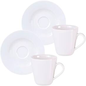 Kit 10 Xícaras 170ml Com Pires 15cm De Diâmetro Aba Larga Branco;