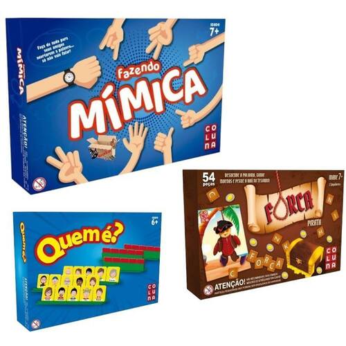 01 Kit Brinquedos Pedagógicos Jogo Mímica + Forca Pirata + Quem é Adivinhação De Suspeitos - Pais E Filhos
