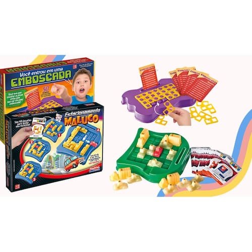Jogo Emboscada Plasbrink – Com o Jogo Emboscada Plasbrink, as crianças contam com 50 desafios para exercitar seu raciocínio. Elas irão encaixar as peças certas para não cair em uma "emboscada"! Indicado para crianças maiores de 5 anos.