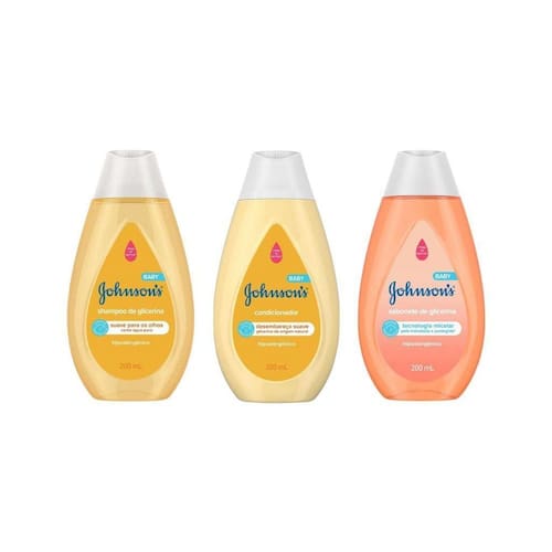 Kit Johnson 1 Shampoo + 1 Condicionador + Sabonete Líquido 200ml Glicerina Descrição: O Kit Johnson com Glicerina é a combinação perfeita para cuidar dos cabelos e da pele diariamente. Ele contém um shampoo de 200ml que limpa os fios de forma delicada, preservando sua hidratação natural, um condicionador de 200ml que proporciona maciez e facilita o desembaraço, além de um sabonete líquido de 200ml enriquecido com glicerina, ideal para uma limpeza suave e eficaz, mantendo a pele macia e hidratada. Este kit foi especialmente formulado para garantir um cuidado completo, com uma fragrância leve e agradável que promove uma sensação de frescor e conforto. Modo de Uso: Shampoo: Aplique nos cabelos molhados, massageando suavemente o couro cabeludo até formar espuma. Enxágue bem e repita se necessário. Condicionador: Após lavar com o shampoo, aplique o condicionador no comprimento e nas pontas dos cabelos. Deixe agir por 1 a 2 minutos e enxágue completamente. Sabonete Líquido: Aplique uma pequena quantidade nas mãos ou em uma esponja, espalhe sobre a pele com movimentos suaves e circulares, e enxágue completamente.