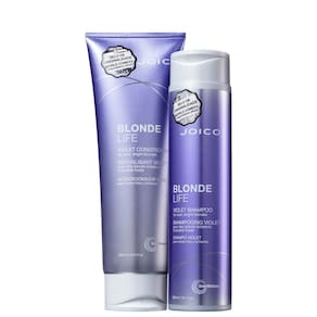 Kit com shampoo e condicionador para cabelos loiros. Kit Joico Blonde Life Violet Smart Release Duo neutraliza os tons amarelados e ajuda a manter a nuance fria.