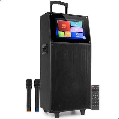 O sistema de karaoke KTV M da auna é o dispositivo ideal para todos os amantes do karaoke graças à sua função de trolley, um grande display touch, 1 microfone UHF sem fio e uma bateria de 12 V / 4,5 mAh de longa duração.