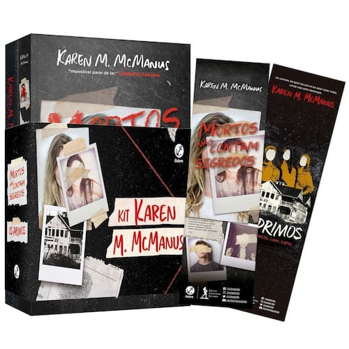 Reunidos pela primeira vez em um kit com marcadores temáticos, conheça dois thrillers irresistíveis da autora best-seller Karen M. McManus: Os primos e Mortos não contam segredos. Os primos (384 páginas) Em Os primos, Milly, Aubrey e Jonah recebem um convite inusitado: passar o verão no resort da avó que nunca viram na vida. Seus pais acreditam que é a oportunidade perfeita para fazer as pazes com a rica e excêntrica Mildred Story, que cortou relações com todos há mais de duas décadas sem maiores explicações. Mas ao chegarem lá, os primos percebem que a família guarda muitos segredos. E eles irão tentar desvendar todos. Mortos não contam segredos (352 páginas) Quando sua mãe é internada em uma clínica de reabilitação, Ellery e seu irmão gêmeo precisam se mudar para a casa da avó que mal conhecem. Na pequena cidade de Echo Ridge, eles logo descobrirão que, por trás das ruas arborizadas e casinhas de cerca branca, há histórias tenebrosas. Entre pichações ameaçadoras que prometem reencenar crimes do passado e uma lista assustadora contendo os nomes das próximas vítimas, Ellery decide desvendar o mistério com as próprias mãos. Mas quando uma colega de turma é sequestrada, a menina percebe que, em Echo Ridge, segredos devem ser levados para o túmulo.