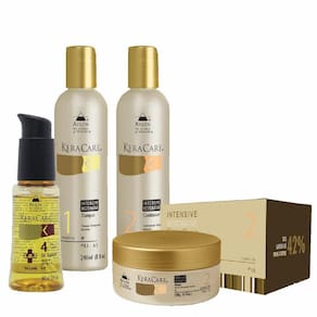 O kit contém 1 Keracare Intensive Restorative Shampoo de 240ml, 1 Keracare Intensive Restorative Conditioner de 240ml, 1 Keracare Intensive Restorative Masque de 180g e 1 Keracare SOS Oil Supreme de 60ml.