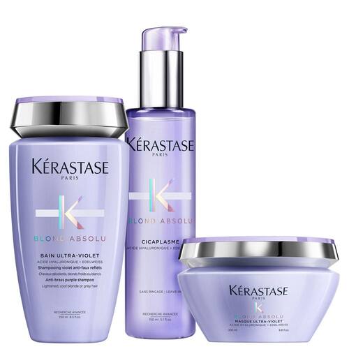 Ritual de cuidados especial para loiros super claros ou platinados. Kit Kérastase Blond Absolu Loiro Platinado neutraliza reflexos amarelados e tratam. Proporciona a cor perfeita enquanto mantém a fibra totalmente saudável, para aqueles que decidem ousar em um loiro sem limites.