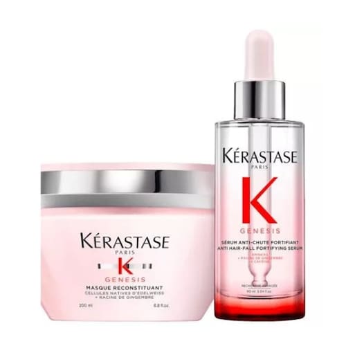 Kit para alinhar, proteger, e age diretamente na queda dos cabelos. Deixa o cabelo macio e garante restauração da fibra capilar em áreas danificadas, a partir da combinação de Células Nativas de Eldelweiss e Raiz de Gengibre. Com textura leve, facilita o pentear, protege a extensão do calor e estimula a fixação do fio na fibra. Diminui o desconforto da região em até 3 semanas e garante queda saudável após 6 semanas de uso.