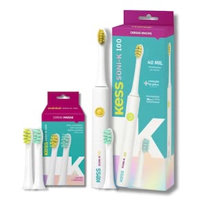 Este kit completo é ideal para quem busca praticidade, eficiência e tecnologia na hora de escovar os dentes. A Escova Elétrica Kess Soni-K100 foi desenvolvida com tecnologia sônica, realizando até 30.000 vibrações por minuto para uma limpeza mais profunda do que uma escova manual. O refil autêntico (com 2 unidades) garante a manutenção da performance, com cerdas macias que protegem as gengivas e removem até 7x mais placa bacteriana.