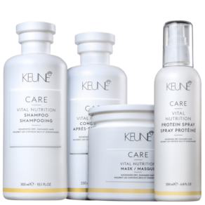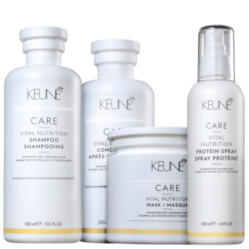 Kit de tratamento para cabelos secos e danificados. Kit Keune Care Vital Nutrition Quarteto hidrata, protege e devolve vitalidade aos fios.