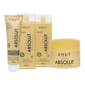 ========================================================================================= Kit Cabelo Perfeito Knut Completo O Kit KNUT ABSOLUT reúne um conjunto completo para cuidados capilares profissionais: shampoo e condicionador de 250ml, máscara de 300g e Hair Remedy de 130g. Formulado para restaurar, hidratar e fortalecer os fios, promove brilho intenso e maciez duradoura. Ideal para quem busca resultados visíveis e cabelos saudáveis, o kit oferece tratamento profundo que revitaliza desde a raiz até as pontas. Aplique o shampoo na raiz molhada e massageie. Puxe o produto para a extensão dos fios. Enxágue. Caso sinta necessidade, repita o procedimento. Em seguida, espalhe a máscara sobre o comprimento e pontas do cabelo úmido mecha por mecha. Deixe agir de 5 a 10 minutos. Enxágue. Distribua o condicionador pelos cabelos úmidos começando pelas pontas e sem passar na raiz. Deixe agir por alguns minutos e enxágue. Coloque uma pequena quantidade do Hair Remedy nas palmas das mãos e esfregue uma na outra. Espalhe no comprimento e pontas do cabelo úmido. Evite a raiz. Penteie como de costume. Não enxágue.