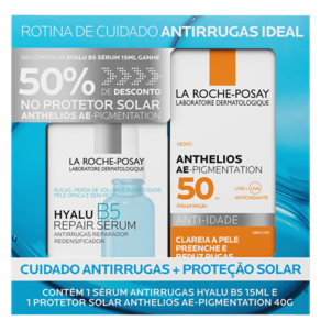 La Roche-Posay Anthelios AE- Pigmentation FPS50 - Protetor Solar Facial 40g: oferece alta proteção contra os raios UVA/UVB e previne manchas, enquanto preenche as rugas e linhas finas e uniformiza o rosto. Além disso, sua fórmula possui alta resistência à água e não deixa a pele com o aspecto pegajoso ou oleoso ao longo do dia.